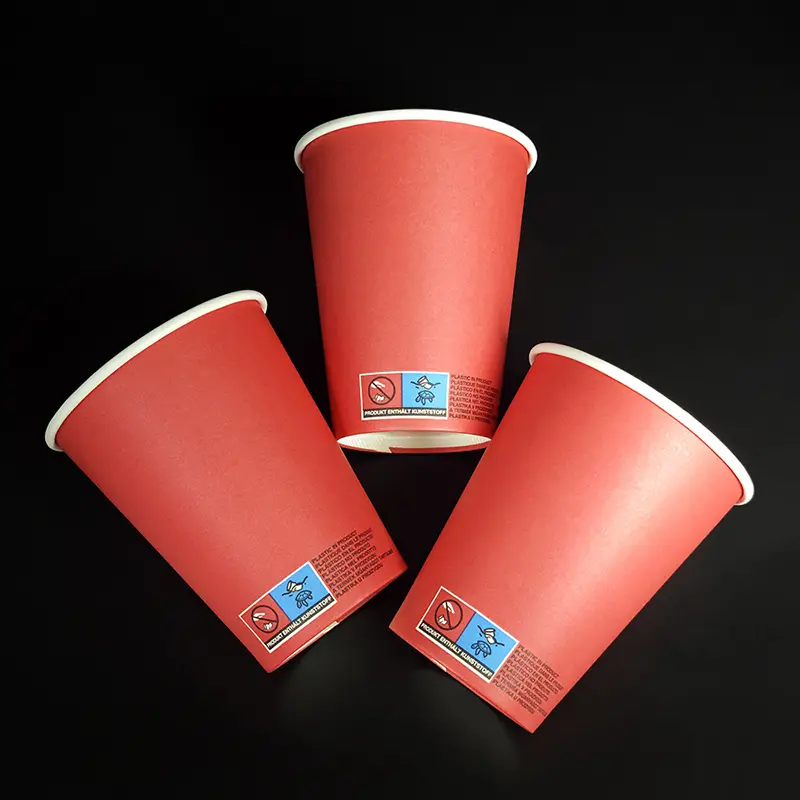 Qualitativ entsprechen sie den kundenspezifischen Produkten. Es besteht aus lebensmittelechtem Rohzellstoffpapier, kombiniert mit einer auslaufsicheren PE-Folie. So können darin verschiedene Getränke wie Kaffee, Saft und Heißgetränke sicher aufbewahrt werden. Dieser Becher hat eine gute Stützkraft und verformt sich nicht so leicht, wenn er in der Hand gehalten wird.